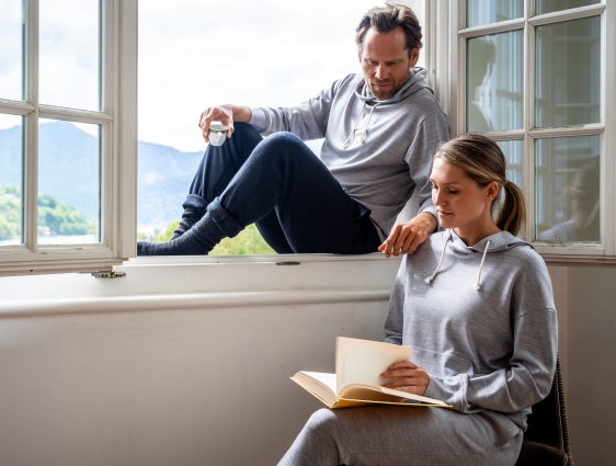 Es ist soweit: Endlich kannst du auch zuhause auf der Couch richtig gut aussehen, indem du unsere lässig geschnittene Merino Jogginghose und den dazu passenden Kapuzenpullover trägst. Einmal angezogen, willst du zuhause garantiert nichts anderes mehr tragen. Doch auch für die eine oder andere Sportart eignet sich unser Strick-Anzug hervorragend. Erhältlich sind die Merino Jogginghose für Herren und die Merino Pullover in den beliebten Farben Navy und Grau-Melange.