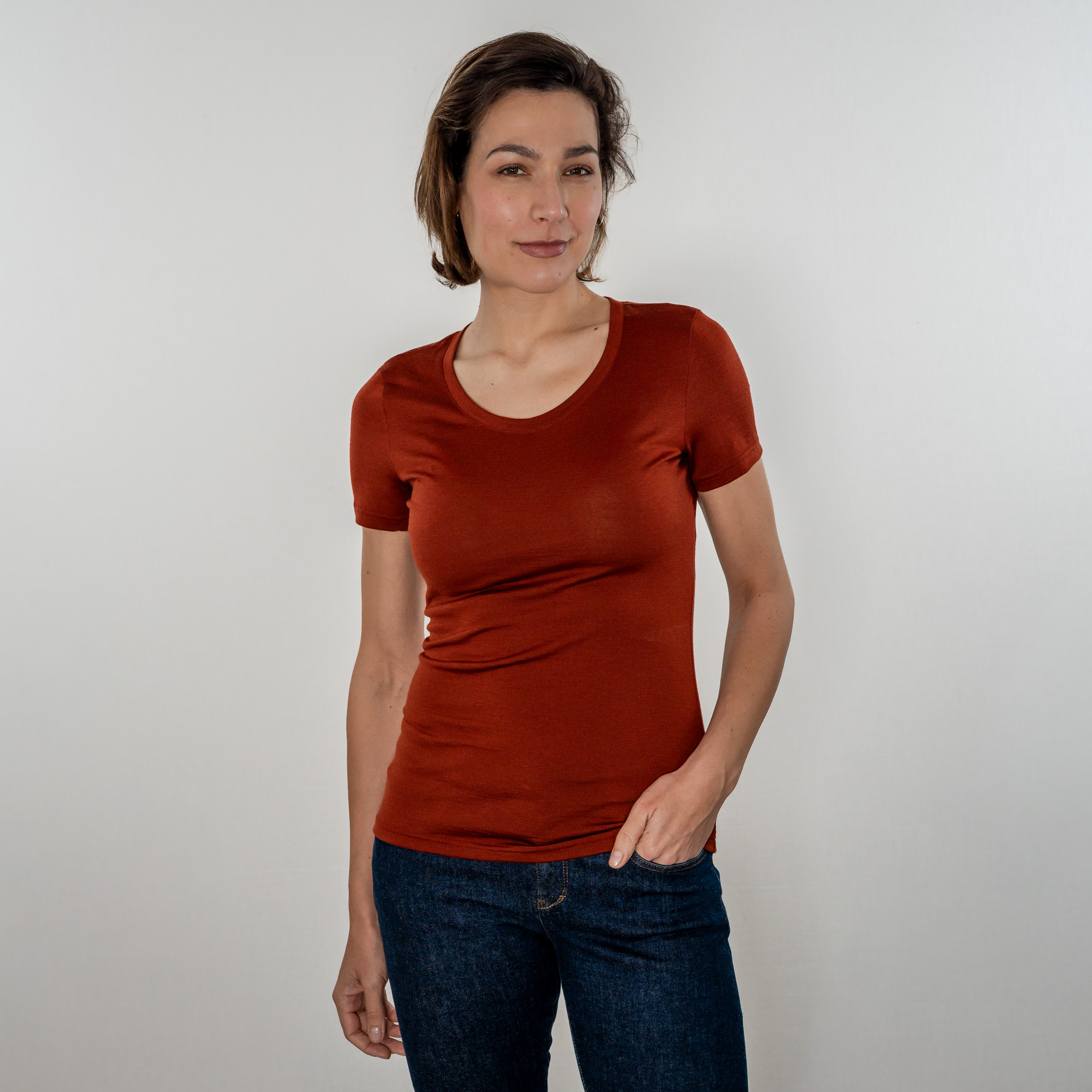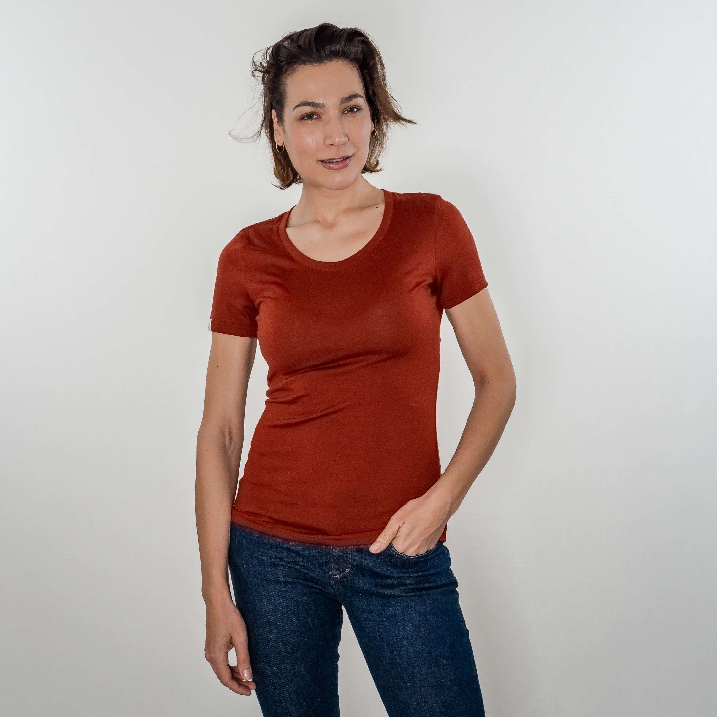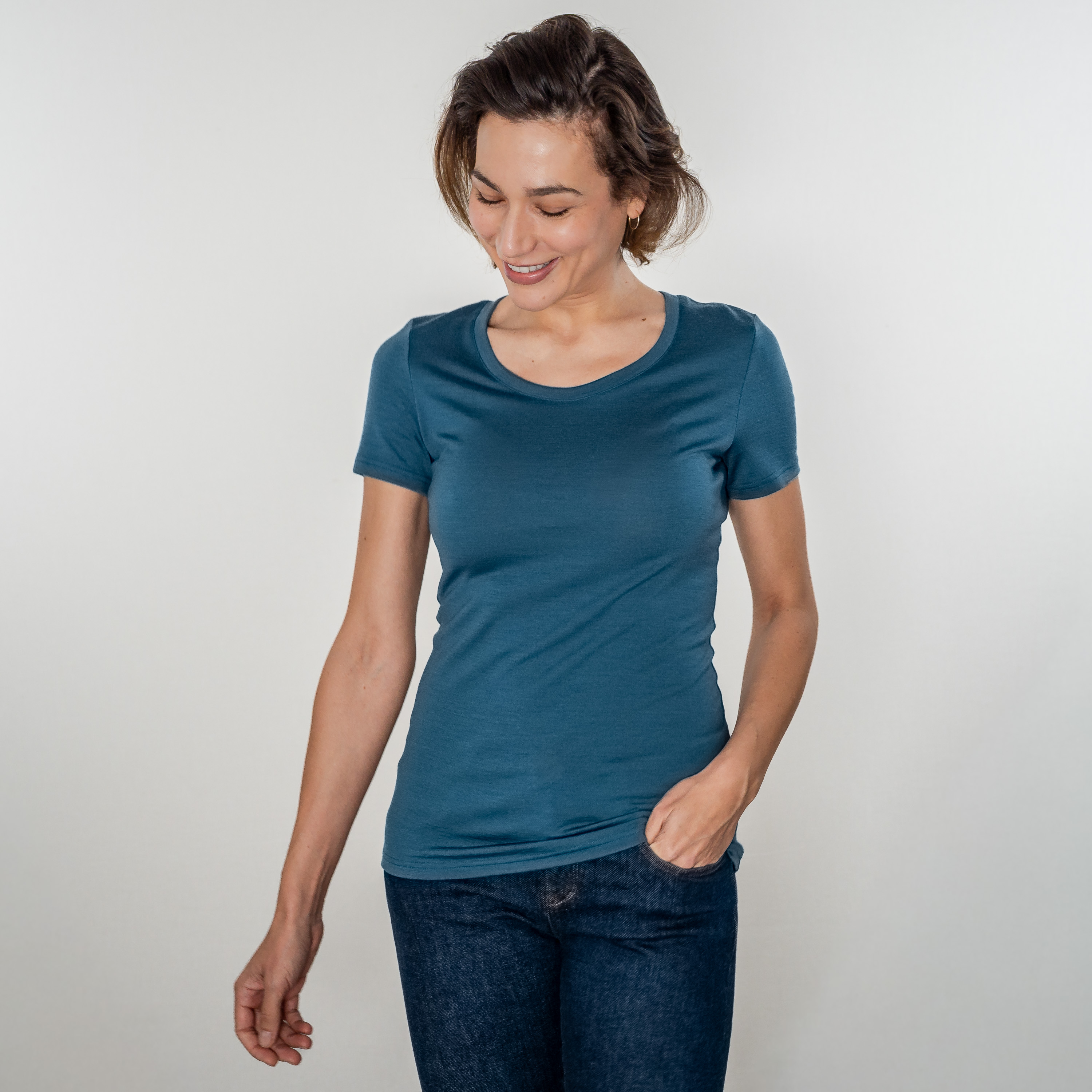 Merino Shirt Damen Kurzarm Slim Fit fit 200 weiter Rundhals