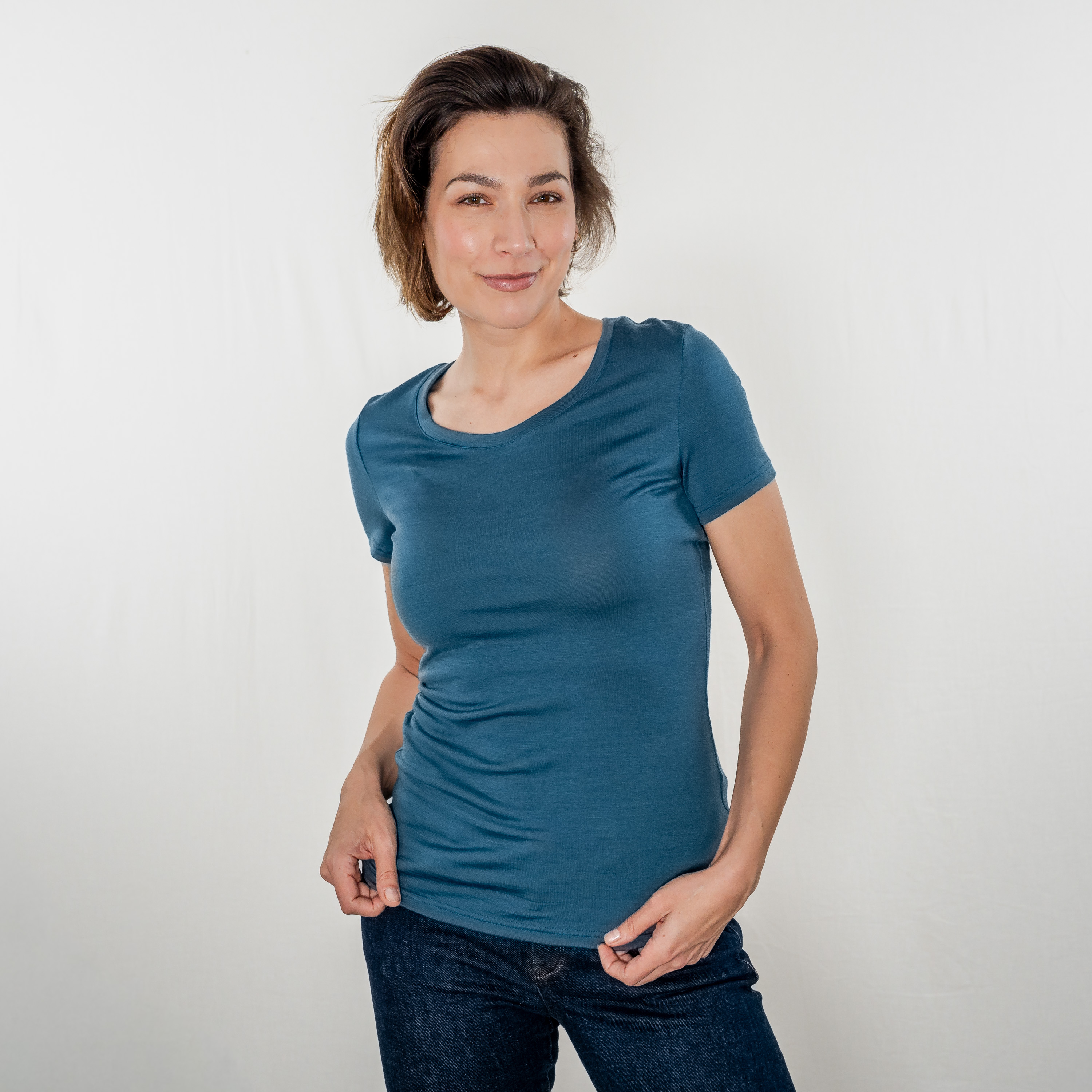 Das Merino Shirt Damen Kurzarm Slim Fit mit 200 mit weitem Rundhals aus reiner Merinowolle vereint höchste Qualität, modernes Design und funktionelle Eigenschaften in einem vielseitigen Kleidungsstück. Hergestellt in Deutschland aus ZQ-Merino-zertifizierter Merinowolle steht es für Nachhaltigkeit, Tierschutz und hervorragenden Tragekomfort.