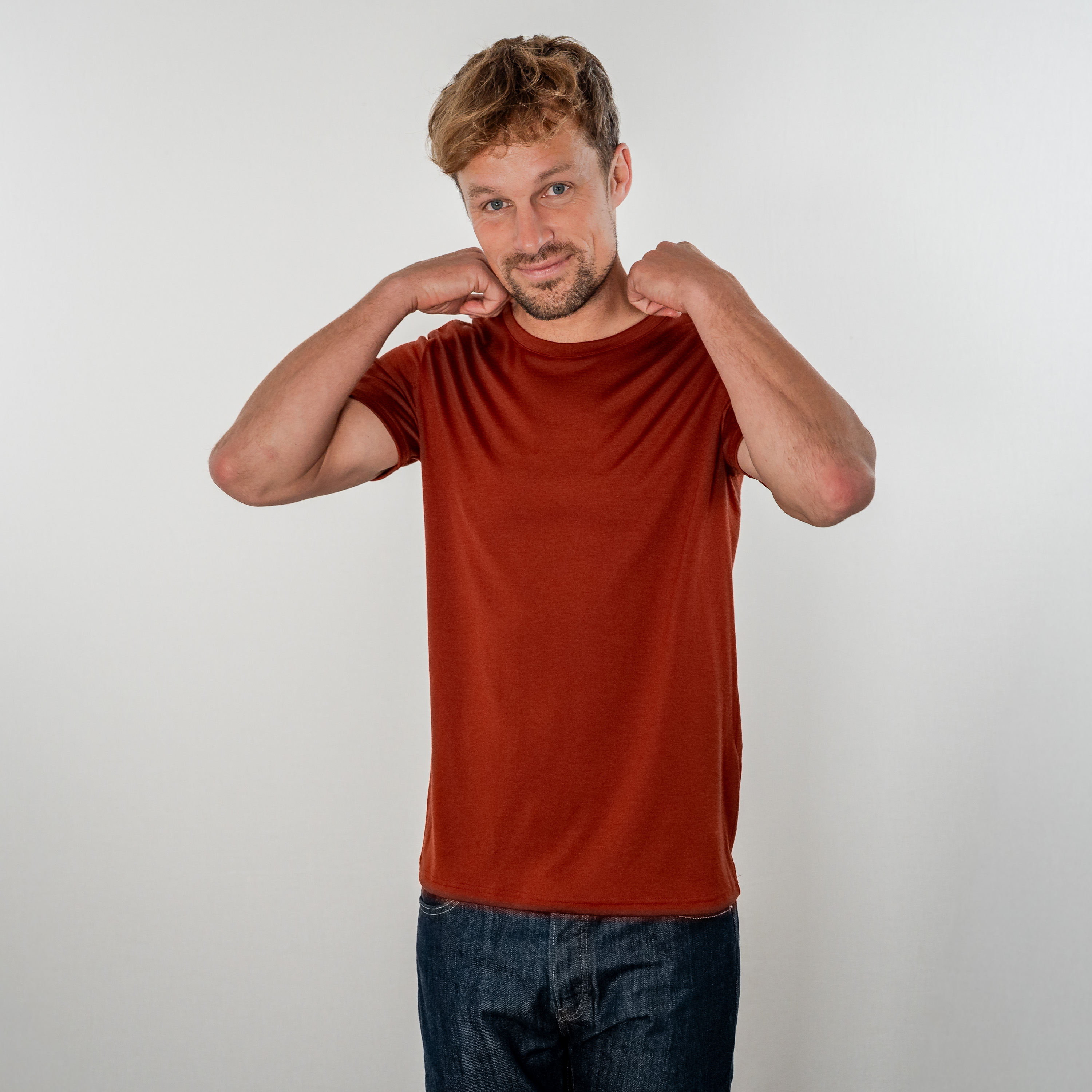 Das Merino Shirt Herren Kurzarm Regular Fit 200 mit Rundhals ist schlicht gehalten und verzichtet auf unnötige Details. Das Regular Fit-Modell bietet eine bequeme Weite und ist etwas kürzer als das Slim Fit-Modell geschnitten, um es auch über der Hose tragbar zu machen. Dennoch hat es genug Leiblänge, um auch in der Hose getragen zu werden. Es fällt fließend und passt sich durch die dehnbare Merinowolle jedem Figurtyp perfekt an.