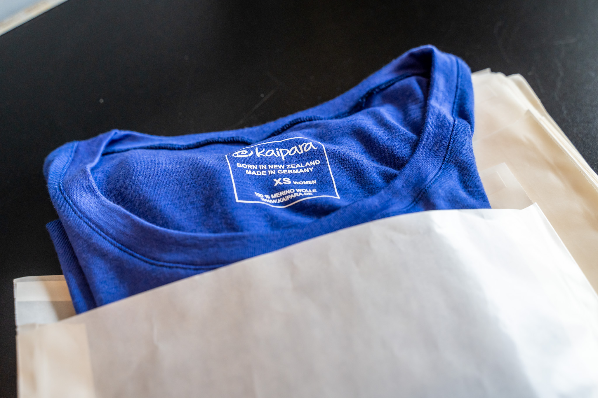 So kommt ein Merino-Shirt in die Versandtasche aus Papier und zu euch nach Hause