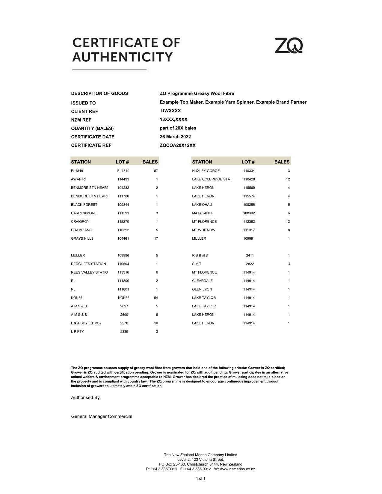 ZQ-Merino-Zertifikat („Certificate of Authenticity“) lässt sich die