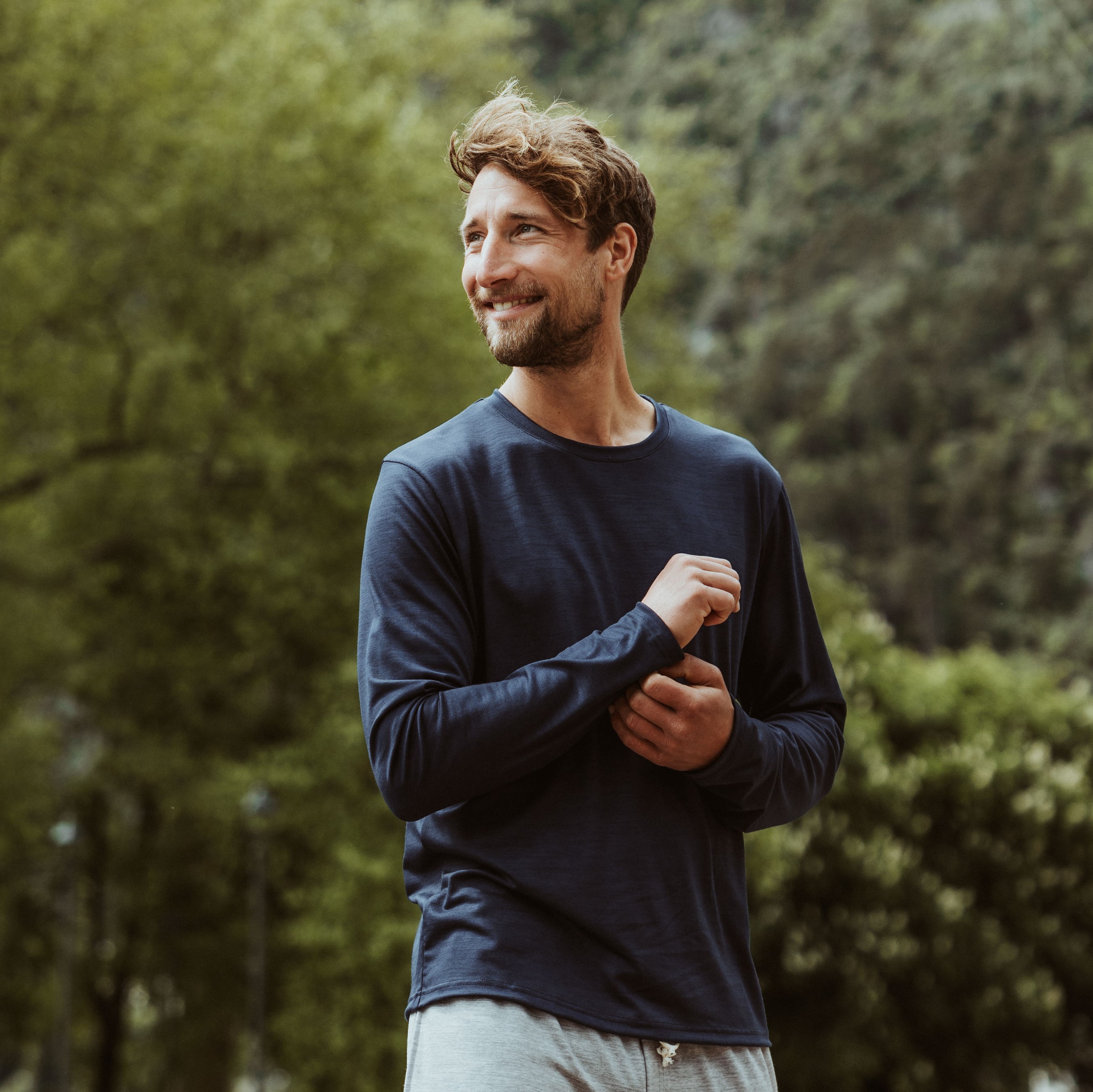 Natürliche Elastizität: Die extrem feinen Merinowollfasern sind sehr weich und anschmiegsam. Dadurch passen sie sich der Körperform optimal an, und das Longsleeve behält seine Form.