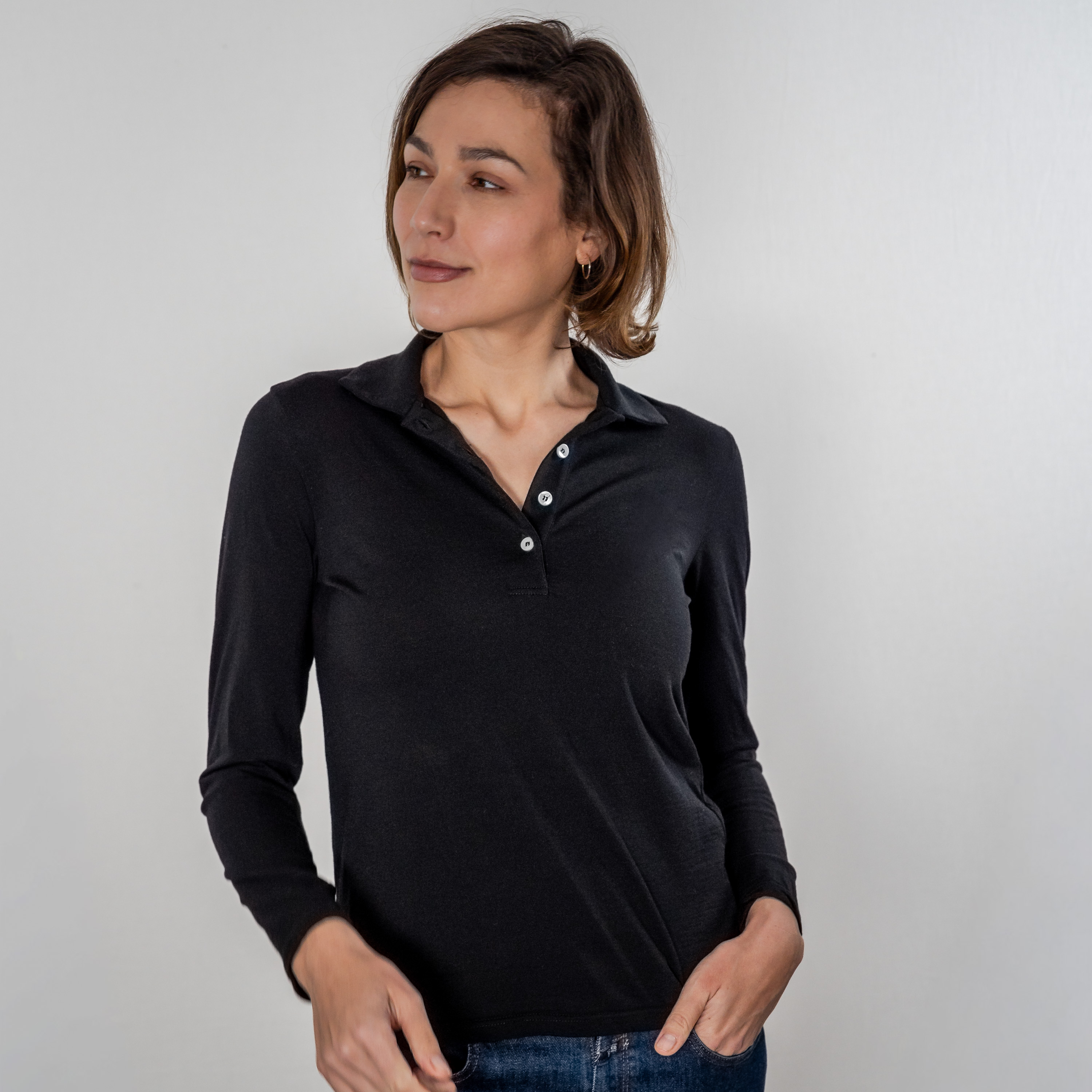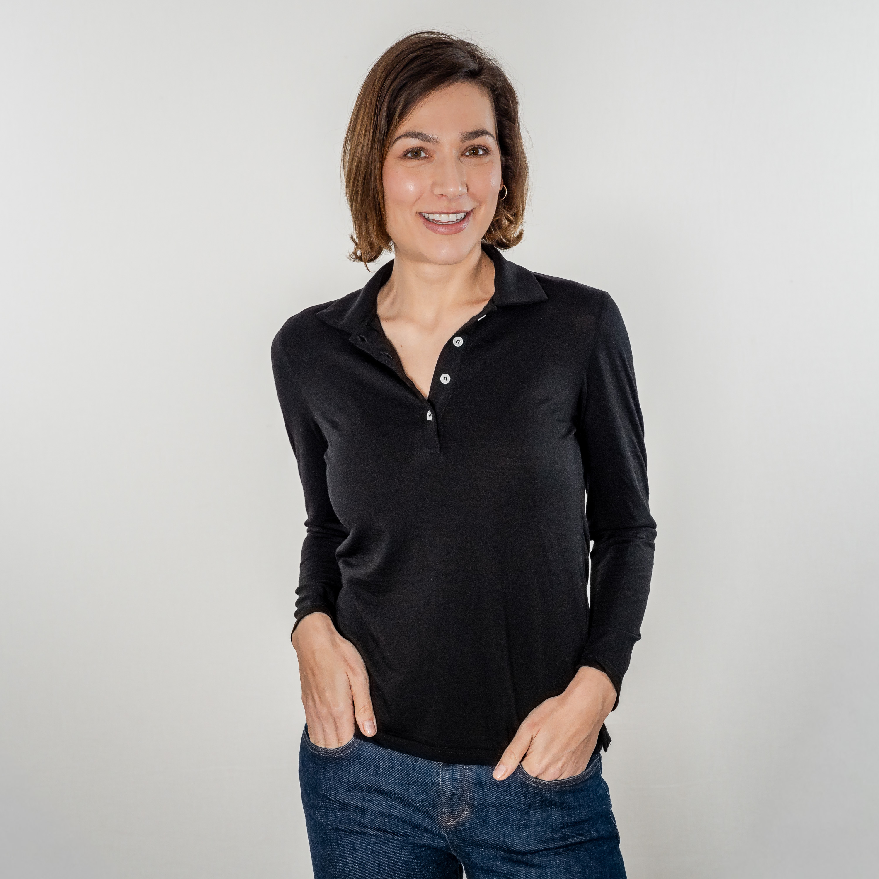 Das URBAN Merino Poloshirt Damen Langarm Regular Fit 200 ist schlicht gehalten und verzichtet auf unnötige Details. Das Regular Fit-Modell hat seitliche Schlitze, bietet eine bequeme Weite und kann sowohl in als auch über der Hose getragen werden. Der Polokragen hat eine dezente Größe und die Knöpfe sind aus Perlmutt. Es fällt fließend und passt sich durch die dehnbare Merinowolle jedem Figurtyp perfekt an.