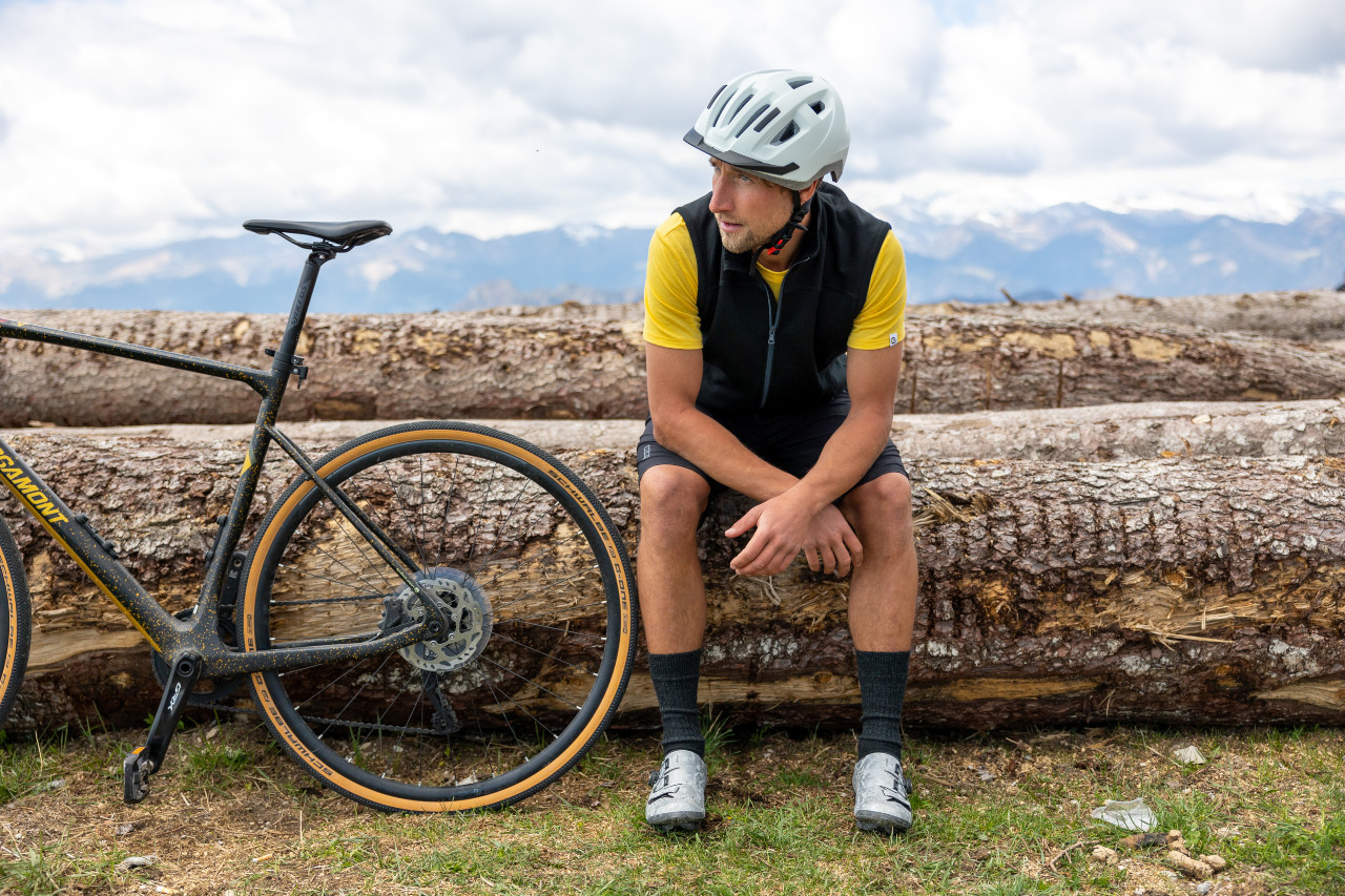- An kühleren Tagen: Unterwäsche in 200-g-Qualität (Boxer und/oder 3/4-Leggings); auf dem Rad ggf. Merino-Nierenwärmer als zusätzlicher Schutz für die kälteempfindliche Körperregion; dicke Merino-Langsocken